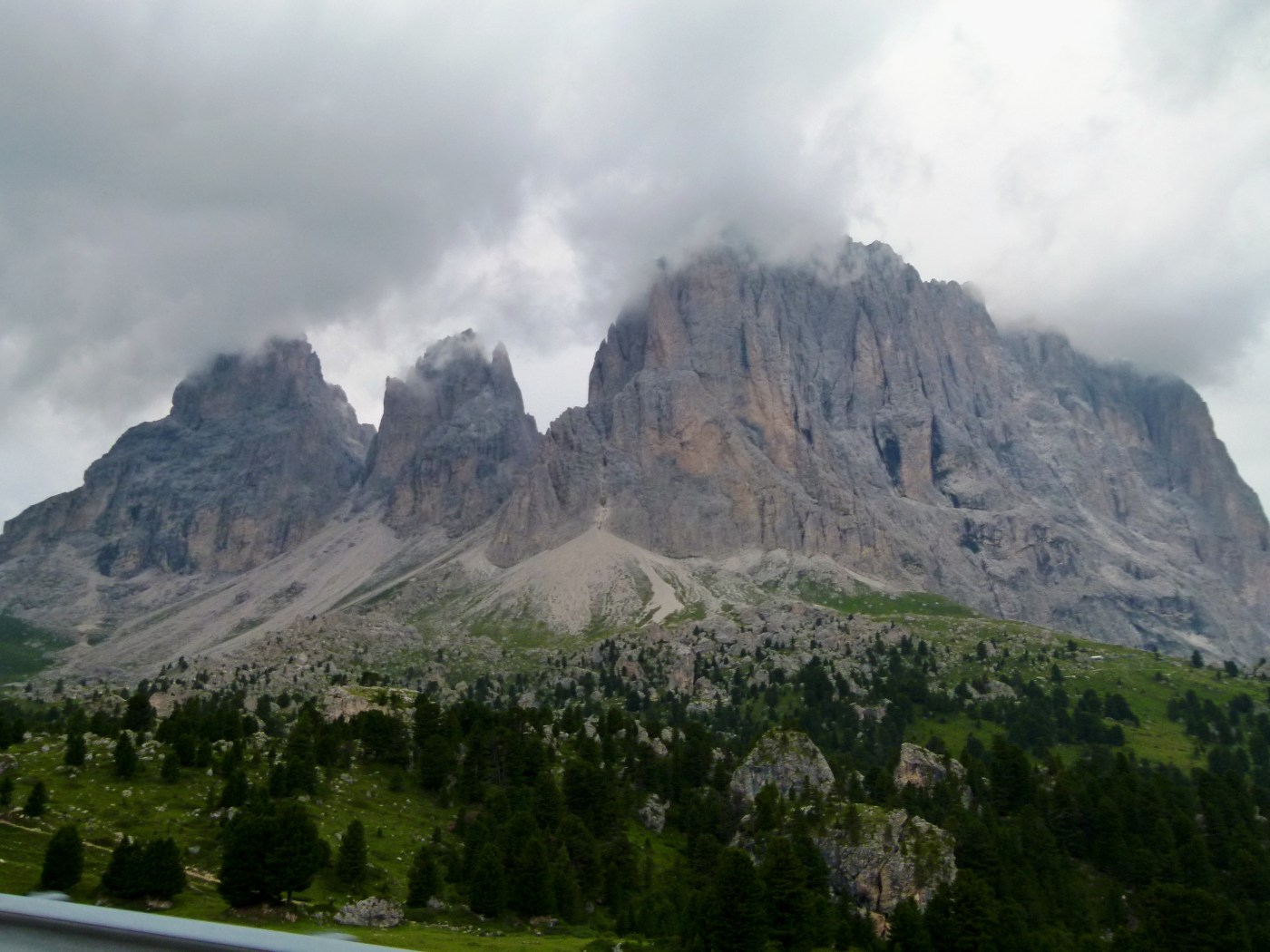 אנחנו נוסעים למעשה בדרך הדולומיטים, עולים, יורדים, מתפתלים. עברנו את מעבר סלה והנוף מרשים ביותר.